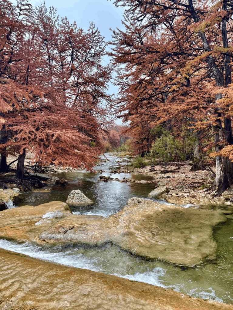 The Hill Country puts on a stunning show in autumn—shades of orange, red, and gold line the riverbanks and trails. Whether you’re hiking nearby at Garner State Park or relaxing at your campsite, the views are picture-perfect.